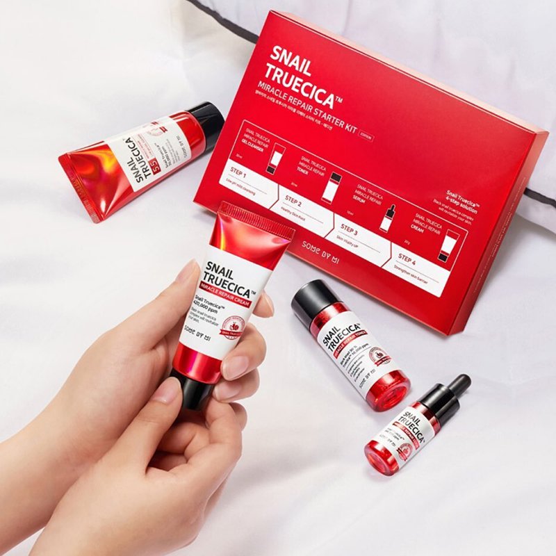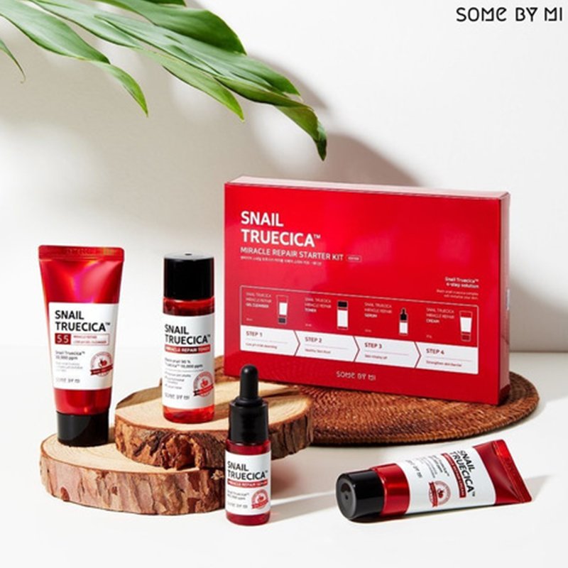 Set de la línea Snail Truecica Miracle Repair de la marca Some By Mi, ideal para mejorar la piel, suavizarla, hidratarla y eliminar acné.